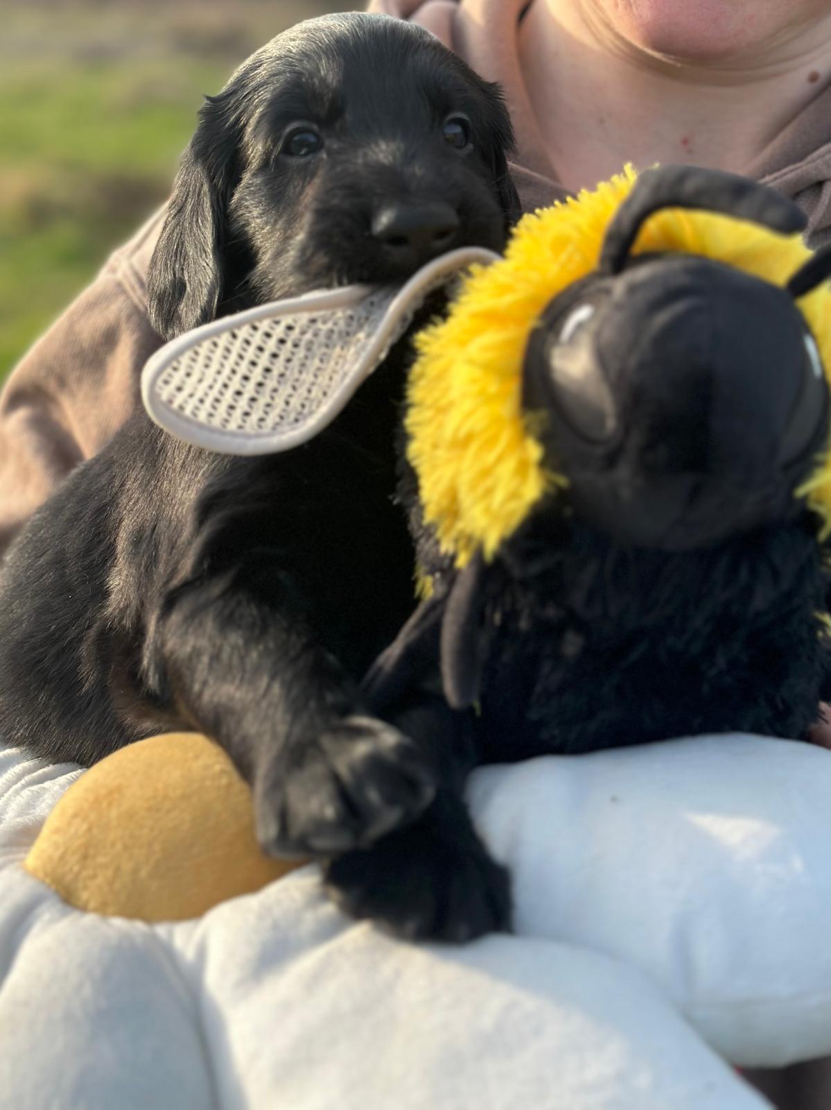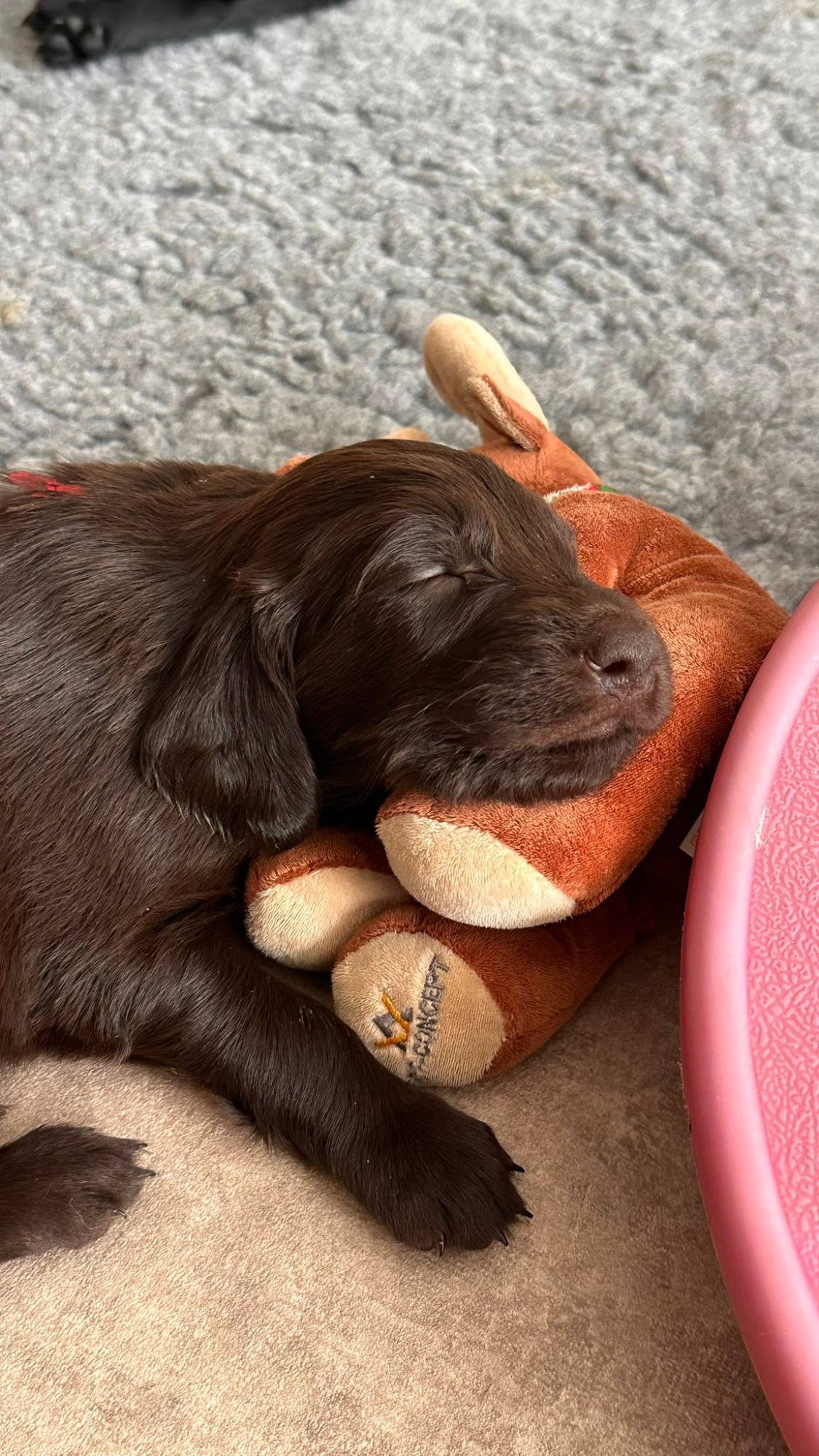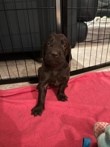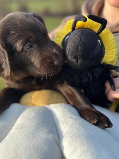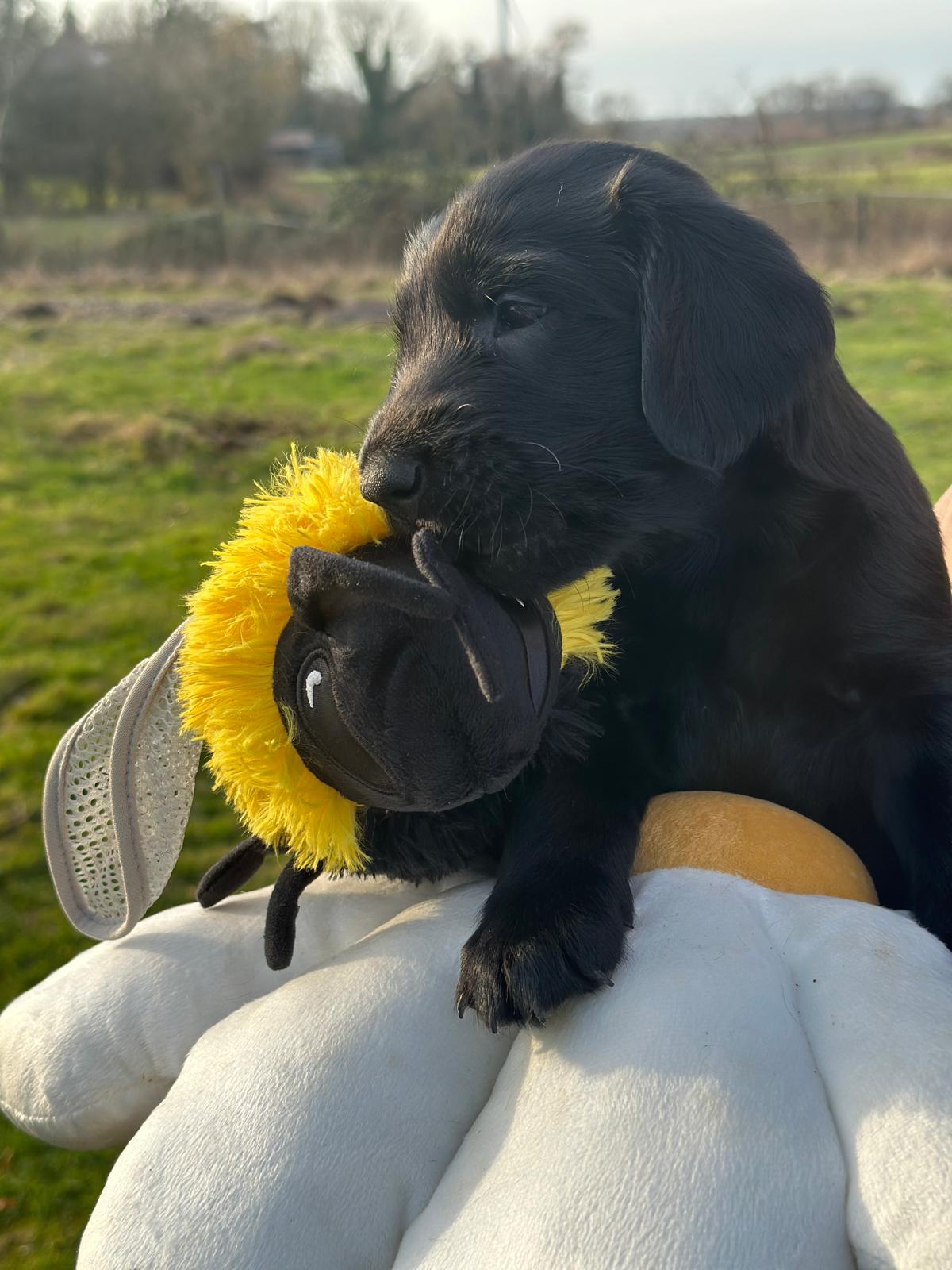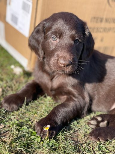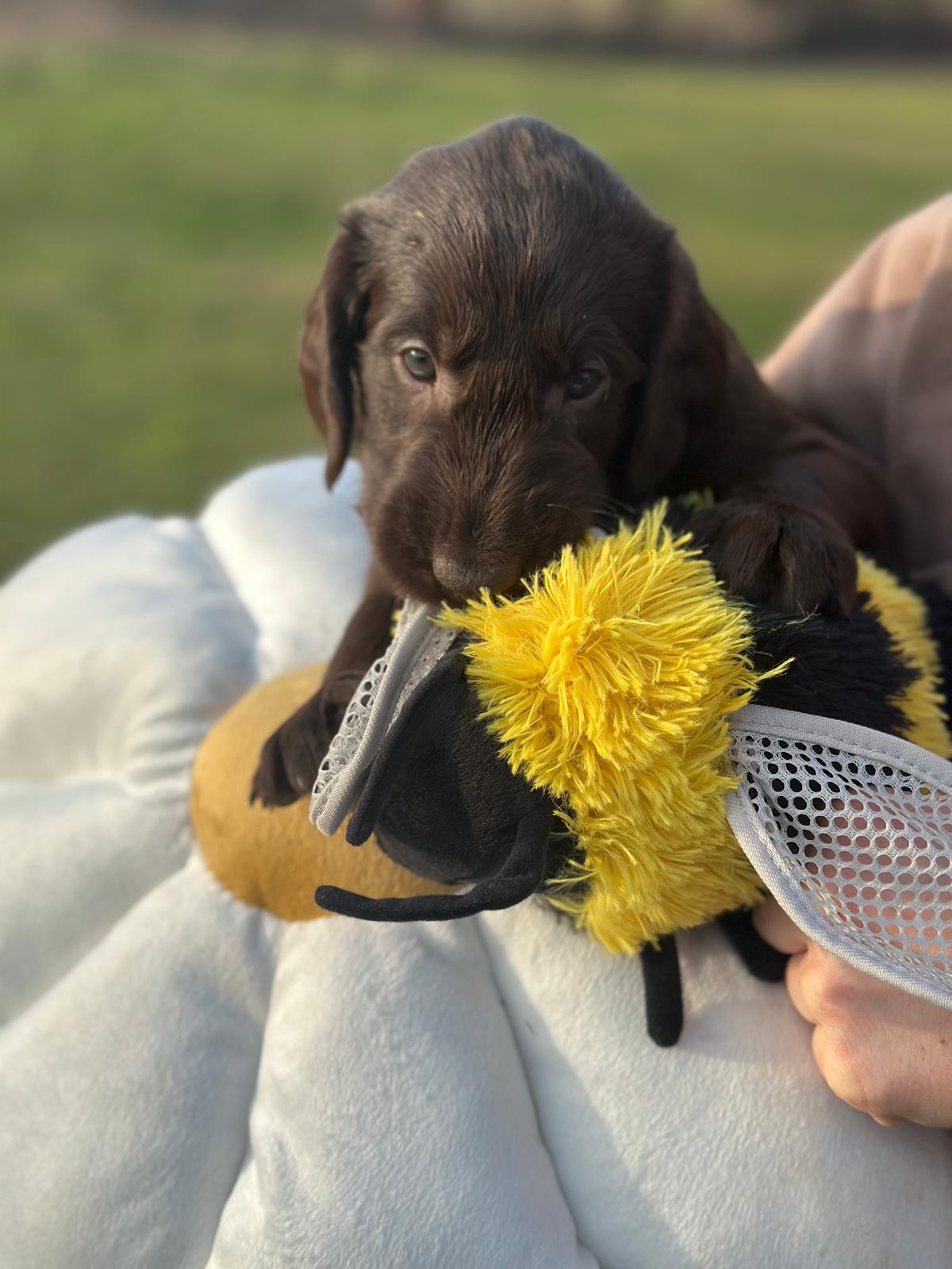 Während die Maus Schwarz rot beim Wiegen einfach weiterschläft, büxt der kleine braune Rüde aus und schaut frech in die Kamera :)