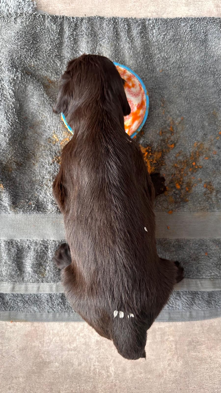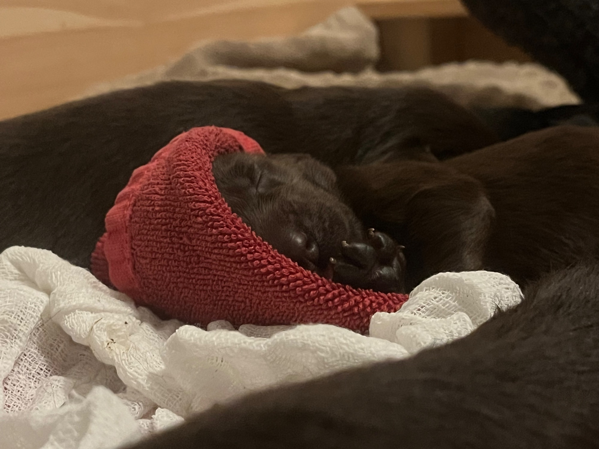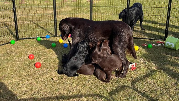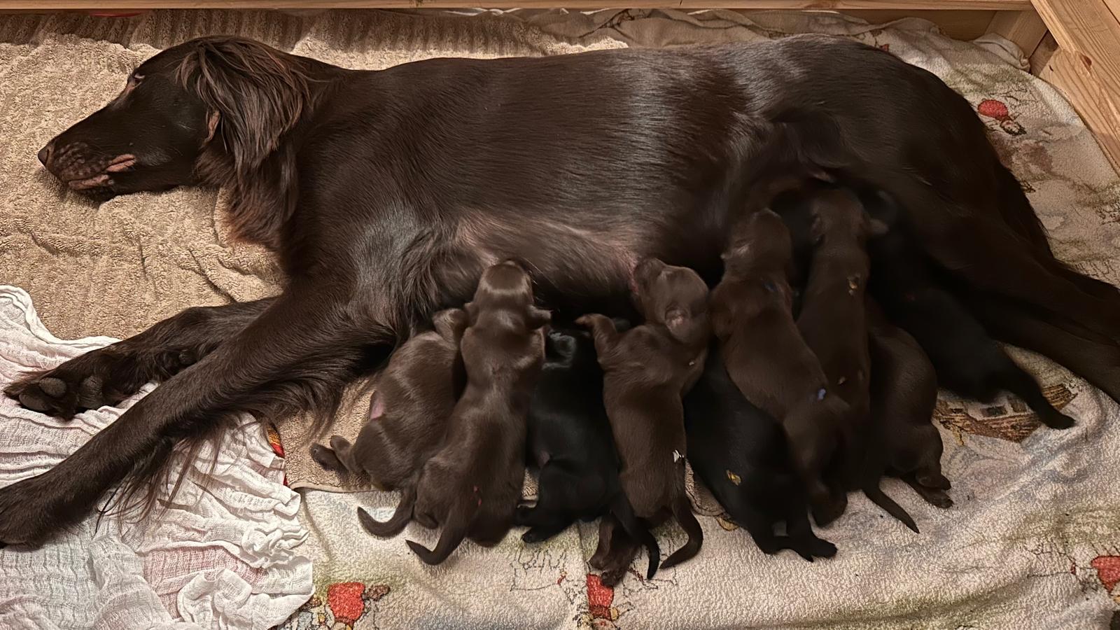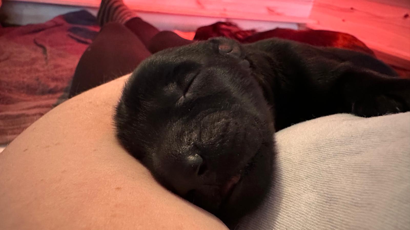 Das erste Mal außerhalb der Wurfkiste gesäugt. :)
